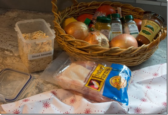 • Spice mix – 1/2 teaspoon each of Coriander powder, cayenne pepper and cardamom powder plus 3 to 4 tablespoons of curry powder; combine in small bowl.