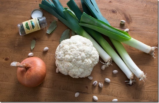 - Put leeks, onion,cauliflower and bay leaves in the medium size soup pot.